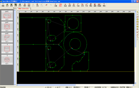 4、可以直接導(dǎo)入外部DXF/DWG格式的排料圖進(jìn)行切割路徑優(yōu)化和NC編程,并可將整張排料圖自動(dòng)拆解成單個(gè)零件,從而利用本軟件對(duì)原排料圖進(jìn)行修改或重新套料。