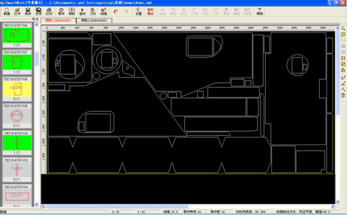 7、排料時(shí)零件狀態(tài)的可視化動(dòng)態(tài)監(jiān)控功能。排料過程中通過不同的顏色和數(shù)字顯示每個(gè)排料零件的狀態(tài)(多排、少排或剛好排完),進(jìn)行精確的零件數(shù)量控制,極大地方便了套料操作。